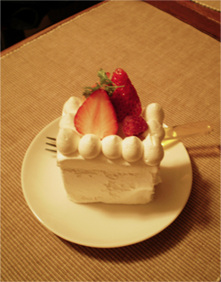 戸川さん誕生日 ケーキです 写真はタカムラさんにとってもらいました そうだよ タカムラさんがいるんじゃん という流れになりました クリームが丸くなってて 中のいちごがおいしくてみんな おいしいねって言って食べていました さてみんながいなくなったので これから少し寝てまた曲書かないと
